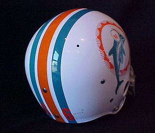 Larry wore a few different style masks during his career but his perfect season helmet was the one to make. This all pro and Hall of Famer used this "grill of a Mac truck" Dungard face mask to open up holes big enough for Csonka and Kiick What a team they had in 72. Thanks again Bobby!
