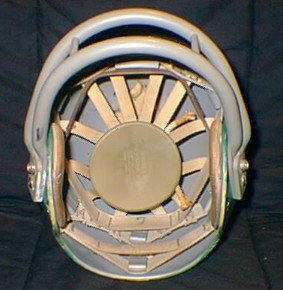 This is the same helmet Bobby Walston wore in the 1960 NFL championship game in which his eagles beat the Packers just prior to the start of the 1960's Packer dynasty. Bobby was a MVP, pro bowl player and league season points scoring leader during his lengthy career as an offensive end and placement kicker for the eagles. After his retirement this helmet was passed on to Frank Budd the former 1960 olympic medal winner who never achieved the gridiron success that was hoped for after his brilliant career on the cinder track. Notice that the two bar mask was installed for Mr. Budd. Bobby Walston was a "single bar only" man.