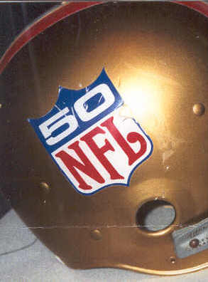 1969 was the 50th Anniversary of the NFL and each player wore a commemorative patch on their left shoulder. The above photo shows the Pro Bowl decal design for each players helmet.