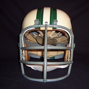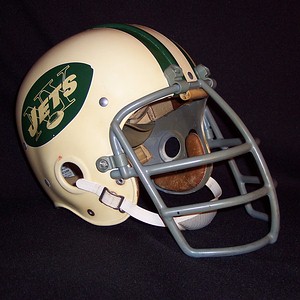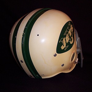 As the entire sports world was shaking its collective heads, it's a good chance, so too was the head wearing this wonderful piece of Jets history. We would assume after Joe Namath made his bold prediction, a few of these helmets may have also hung low in practice. This is the RK2 "Husky" model Riddell helmet, worn by some of the largest men of the time. Namath had his work cut out in keeping the Colts at bay in Super Bowl III and would've had even more issues by his own players if they lost, especially the "husky" ones.