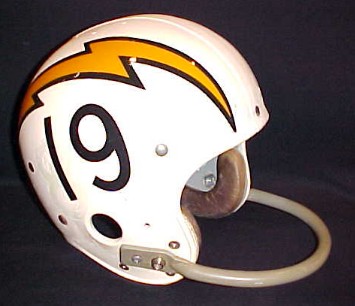 A late 1960s Lance Alworth game used helmet. Obtained from a famous Bourbon Street drinking establishment where it was previously displayed for over twenty years. After an extensive cleaning process to remove the tobacco smoke residue, this helmet came back to life as good as ever. Has the correct Crostwaite Athletic Supply stickers. Hard to believe but it was a reissued helmet when Lance wore it (worn previously by player no. 81) but that's how things were done in those days!