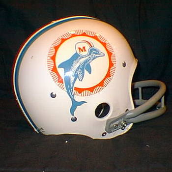 This is a beautiful preserved 1972 Dolphins helmet, with original decals. Help us out Dolphin fans, this helmet is size 6 7/8 and has a hand written marking of "COW" on the inside of the helmet.