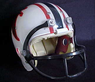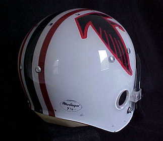 The Atlanta Falcons were ready for a complete uniform change in 1974. This was one of the last prototypes MacGregor offered before their demise. The Falcons never went for this version but we were extremely happy to have aquired this pristine helmet, and share it with our helmet hut friends.