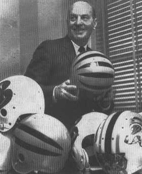 New Bengal's head coach Paul Brown inspects a verity of helmet designs for the just born AFL team, two of which look a lot like the headgear the team eventually adopted in 1981