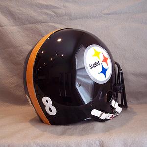 The Riddell model "HA 91" and "HA 92" (extra large) fluid/air filled cell helmet was introduced in 1968. Over the years this model has been slightly modified by basically changing the front forehead pad and has been reintroduced as new models "Micro Fit" in the 1970s and "M-155" in the 1980s. The M-155 is the last helmet Swann wore before his wonderful HOF career ended.